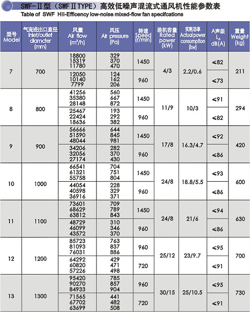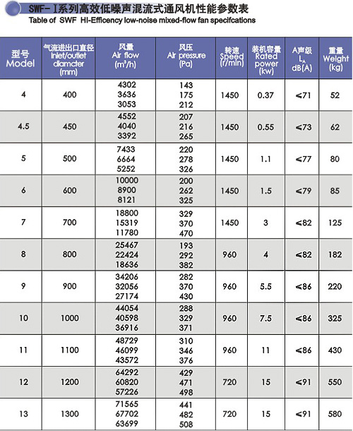 | SWF系列混流式通风机由上海交通大学、尊龙凯时风机厂共同研制开发,具有同机号风机量较离心风机大,风压较轴流风机高,可以轴向安装等特点。本系列风机应用场合广泛,如各类高级民用建筑、工矿企业等。北京首都宾馆、亚运工程二十三个场馆所、新华社大楼、五州大酒店、北京人民大会堂、钓鱼台国宾馆等单位和上海、深圳等大城市都采用此类产品,还批量出口新加坡等东南亚地区和配套出口日本。 SWF系列混流风机具有效率高、结构紧凑,安装方便、运行可靠、噪声低等显著特点,它荣获了国家级“星火”奖、上海市科技进步奖,获国家实用新型专利、被国家科委列入国家级重点科技成果推广项目产品。 |